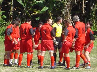 Quase 13h e poucos conseguiam correr no gramado-areia do campo do Caiobá. Os mais empolgados eram Edson Gonzaga, do Coritiba, e Gentil, atacante veterano de Matinhos convidado para o clássico. E justamente Edson e Gentil fizeram os outros gols da tarde: o do coxa numa jogada pela esquerda, e o do Rubro-negro de pênalti.