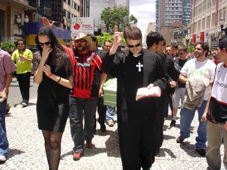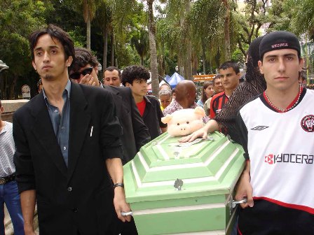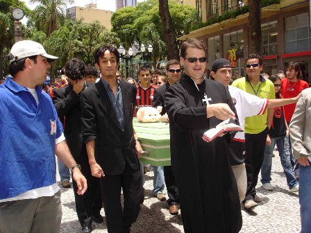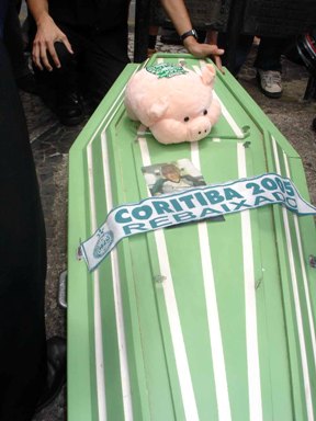 Não é mole, não. A coxarada na segunda divisão!". Essa foi a senha para se dar início ao cortejo de despedida ao Coxa, protagonizado por alguns torcedores atleticanos. No enterro simbólico do maior rival teve padre, viúva, coveiro e até uma imitação do presidente do Coritiba, que, ao lado de outras dezenas de torcedores do Furacão, deram seu último adeus ao rival, rebaixado para a Segunda Divisão do Campeonato Brasileiro.
