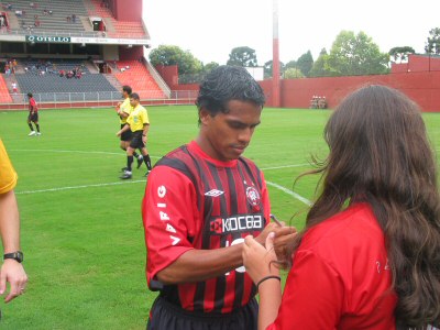 Ferreira concede autógrafo a fã [foto: FURACAO.COM] | |