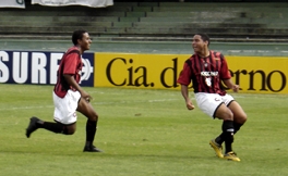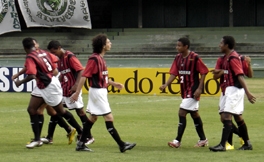Jogadores comemoram o primeiro gol do Furacão [foto: Julia Abdul-Hak] | |