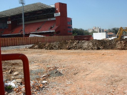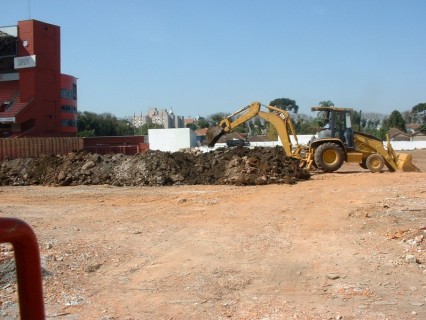 As obras de preparação do antigo terreno do Colégio Expoente foram retomadas. Nesta quarta-feira, uma escavadeira retirou entulho e funcionários trabalharam no local. O Atlético adquiriu a propriedade integral do terreno em 2005 e pretende usar o espaço para ampliar a capacidade da Kyocera Arena.