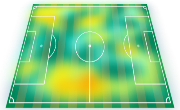 heatmap retirado do site Footstats, como há mais cor amarela pela faixa da esquerda do campo atleticano (quanto maior o tom de amarelo, maior foi o tempo em que o time frequentou aquela região do campo):