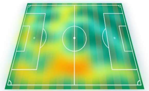 Para mostrar que o Atlético atacou pelos dois lados do campo, o Heatmap do Furacão retirado do Footstats demonstra a grande fluência do time pela direita e a pequena pela esquerda.