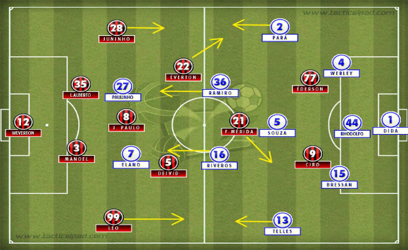 Para que todos estes aspectos ofensivos aparecessem, o Atlético iniciou o jogo no 4-3-1-2 e com uma surpresa na escalação: Zezinho no lugar de João Paulo. Já Renato Gaúcho iniciou a partida no já provável 3-5-2.