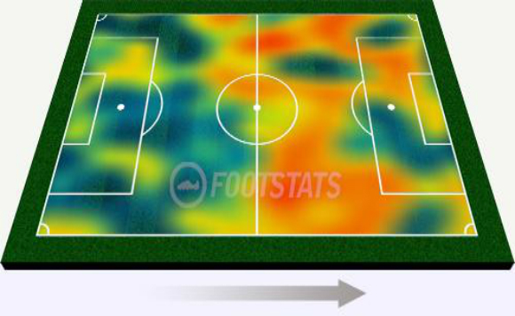 Vejam pelo Heatmap, retirado do Footstats, a seguir a fluência que o time tricolor teve em campo defensivo do Atlético: