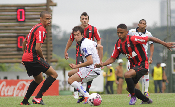 Deivid disputa lance com paranista, observado por Cleberson e Elias [foto: FURACAO.COM/Joka Madruga]