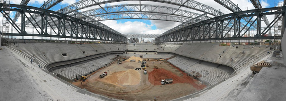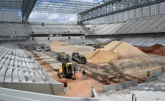 Os principais avanços foram na área do gramado, que começou a ganhar os trabalhos do sistema de drenagem e preparação para a inserção das placas de grama, que deve ocorrer em janeiro; a conclusão dos degraus de arquibancada; e a montagem de 4 dos 5 andares do prédio metálico que dará acesso às áreas Vips, técnicas e de imprensa.