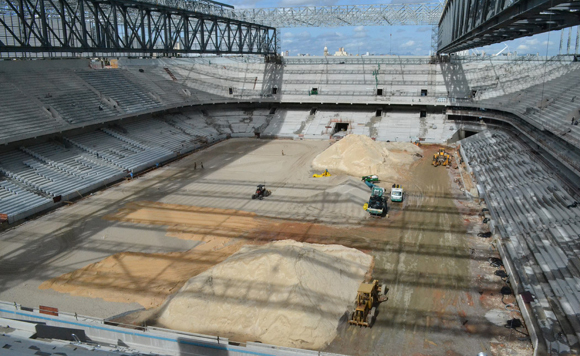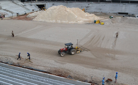 Campo de jogo está sendo preparado; plantio da grama deve ocorrer nas próximas semanas [foto: site oficial]