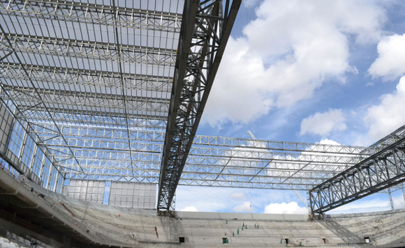 Trabalhos na cobertura do estádio também avançam [foto: site oficial]