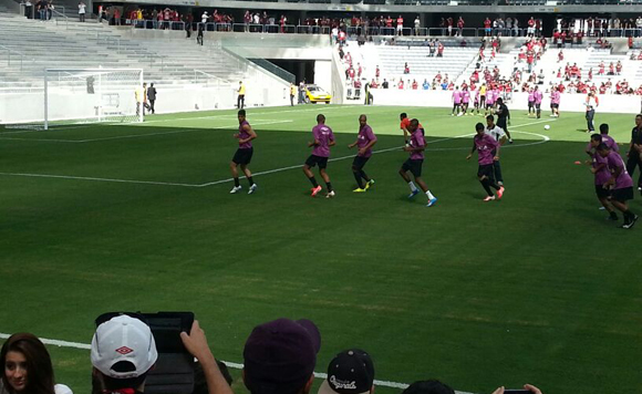 Atlético se aquece no gramado da Arena [foto: FURACAO.COM]