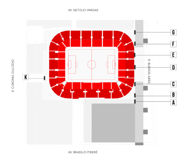 No jogo-teste desta quarta-feira (14), entre Atlético Paranaense e Corinthians, as torcidas terão acesso ao estádio por diferentes portões. Os atleticanos entrarão na Arena através dos Portões B, C, D, E, F e G, localizados na esplanada da Rua Buenos Aires, acessada pela Av. Getúlio Vargas [local com acessibilidade] ou pela Rua Brasílio Itiberê [sem acessibilidade]. Já o acesso dos torcedores visitantes será realizado através do Portão K, na Rua Petit Carneiro [veja todos os acessos no mapa abaixo].