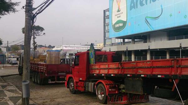 Várias peças para a instalação do teto retrátil da Arena da Baixada foram entregues ao Clube Atlético Paranaense. A ideia de fazer um estádio coberto surgiu há alguns anos, mas não houve tempo para adotá-la para a Copa do Mundo.