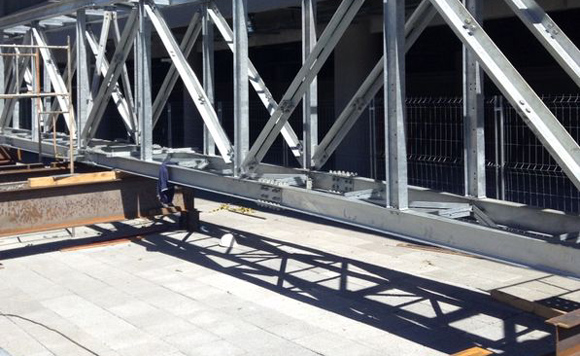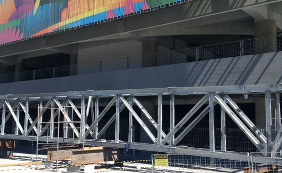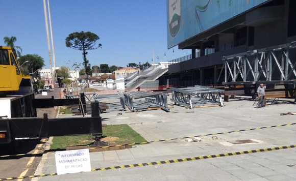 Instalação do teto retrátil na Arena da Baixada [foto: Vinicius Ferraz]
