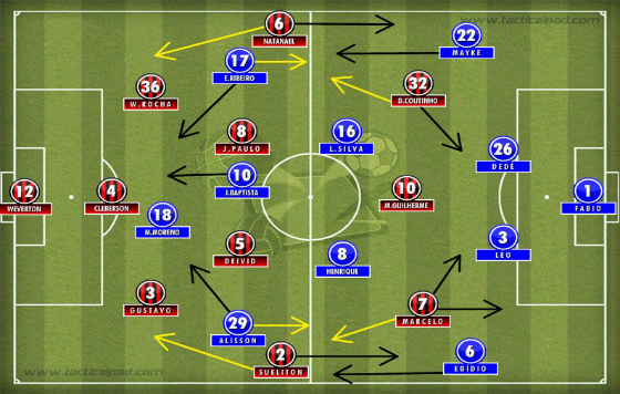 Por usar de um esquema já utilizado, o Atlético apresentou as mesmas falhas de outras partidas: falta de um jogador com presença de área e enorme espaçamento no início da transição ofensiva. Sem conseguir começar as jogadas, sem um jogador como referência na área adversária e diante do líder do Brasileirão, o Furacão sofreu o segundo, aos nove da segunda etapa, e nem sequer chegou ao gol de Fábio no segundo tempo.