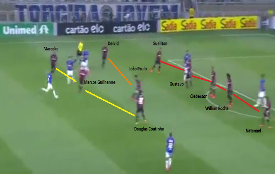 Ao se deparar para o jogo contra o líder do Campeonato Brasileiro, Claudinei Oliveira detectou que o Cruzeiro realiza muitos cruzamentos. De fato, contra o Atlético, a Raposa realizou 30 cruzamentos. Para neutralizar este sistema ofensivo azul celeste, o Furacão iniciou com Gustavo, Cleberson e Willian Rocha, porém, mesmo assim, sofreu uma derrota. Para o oitavo revés no Brasileirão, o Furacão começou no 3-4-3 e o Cruzeiro no 4-2-3-1: