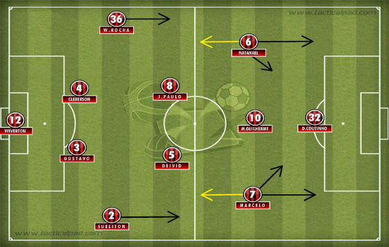 O 4-2-3-1 utilizado no início do segundo tempo. [foto: Caio Gondo]