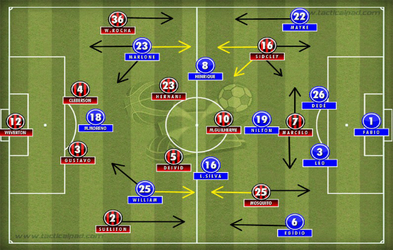 As entradas de Sidcley, Mosquito e Hernani pouco alteraram a equipe taticamente e ofensivamente. Do início do segundo tempo até o fim do mesmo, o Atlético jogou no 4-2-3-1, mas o Cruzeiro ganhou mesmo assim.