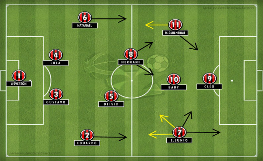 A diferença de postura da equipe de Enderson Moreira em relação a que Claudinei Oliveira levava a campo ficou clara e mostra que o processo de mudança está em andamento. Por outro lado, o novo técnico não alterou o esquema tático adotado nas maiorias das vezes pelo antigo. O 4-2-3-1, tendo nas três meias: Edigar Junio na direita, Bady pelo centro e outro jogador pela esquerda; deverá ser mantido na próxima partida do Campeonato Paranaense.