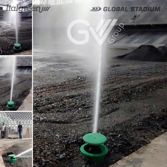 Global Stadium: irrigação funcionando! [foto: divulgação]
