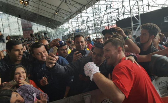 O desafiante Stipe Miocic atende torcedores nos treinos abertos desta quarta-feira na Arena da Baixada [foto: divulgação/UFC]